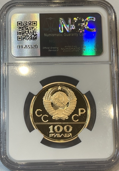 Золотая монета 100 рублей "Гребной канал в Крылатском" 1978г в слабе NGC Proof 70 ULTRA CAMEO