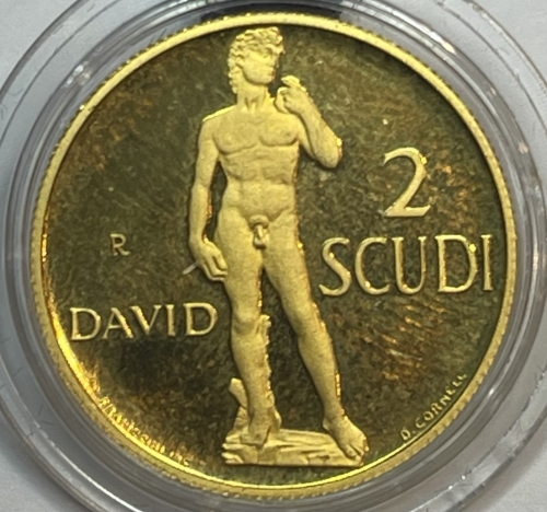 Золотая монета 2 скудо "Давид" Сан-Марино 1997г., Au 900, 6,45г.