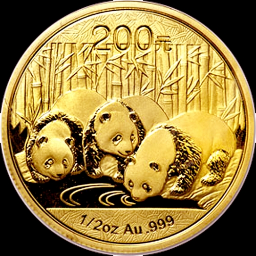 Золотая монета Китая 200 юаней "Панда" 1/2 унции и 15 гр.