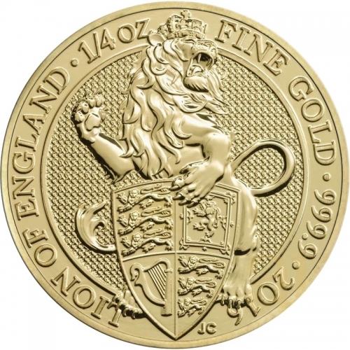 Золотая монета 25 фунтов "Лев Англии" 7,78 г. 2016 г. Великобритания